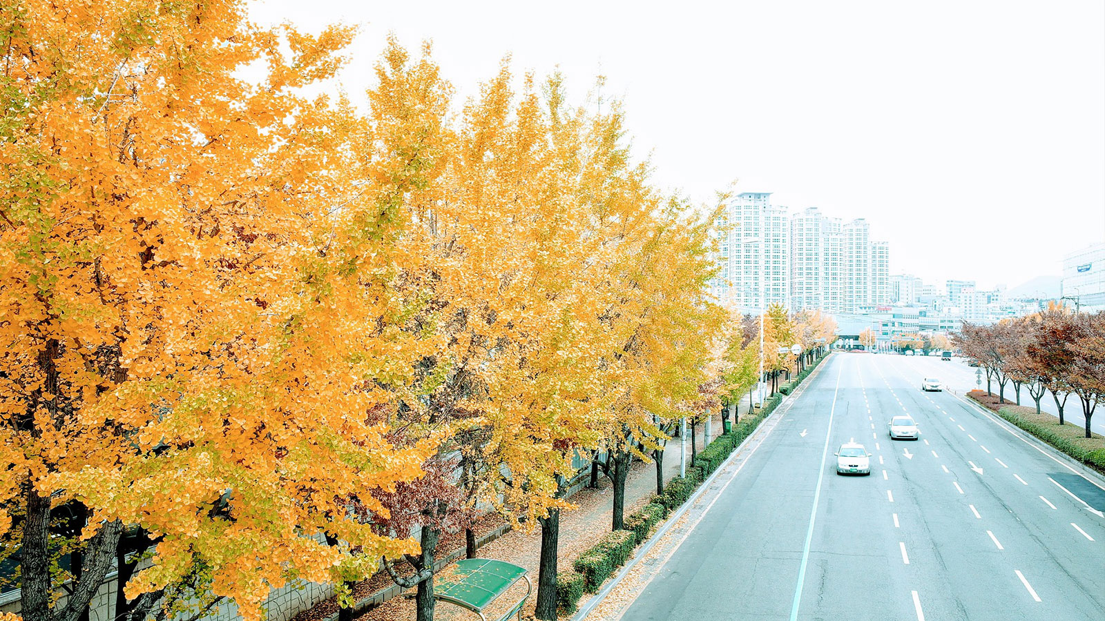 昨日に続いて、今日も街の彩りです。毎年のことですが、大通りの並木道はすっかり黄色に染まってきました。